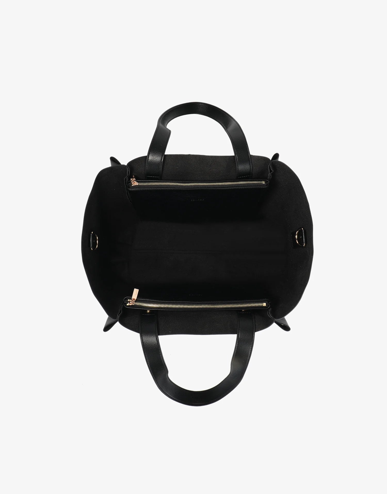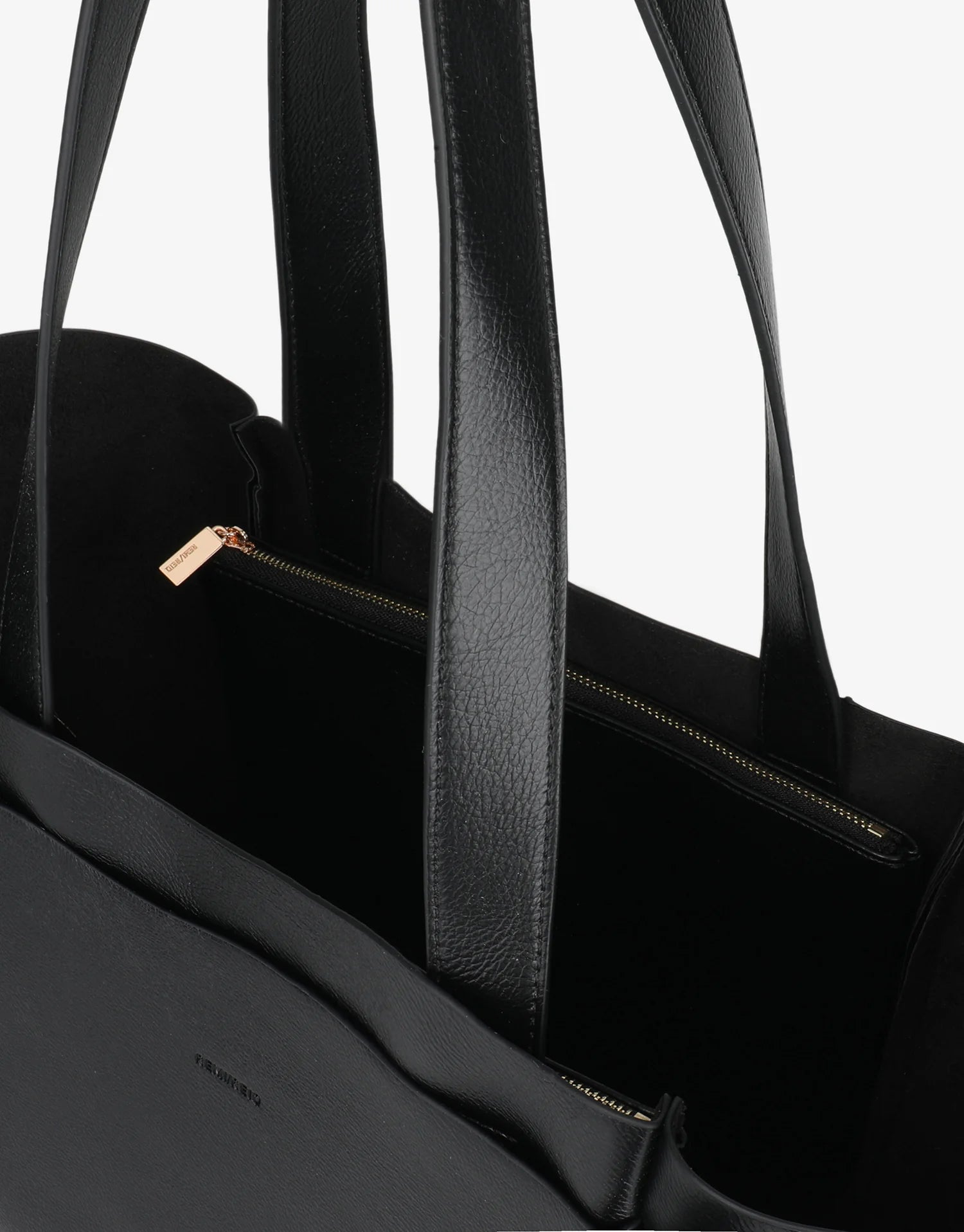 This bag nails sophisticated, spacious functionality with its modern, clean silhouette. It's roomy enough for everything—from your laptop to your water bottle—and features comfy shoulder handles and a handy exterior slip pocket for your phone or keys. Just grab it and go! Vegan Leather