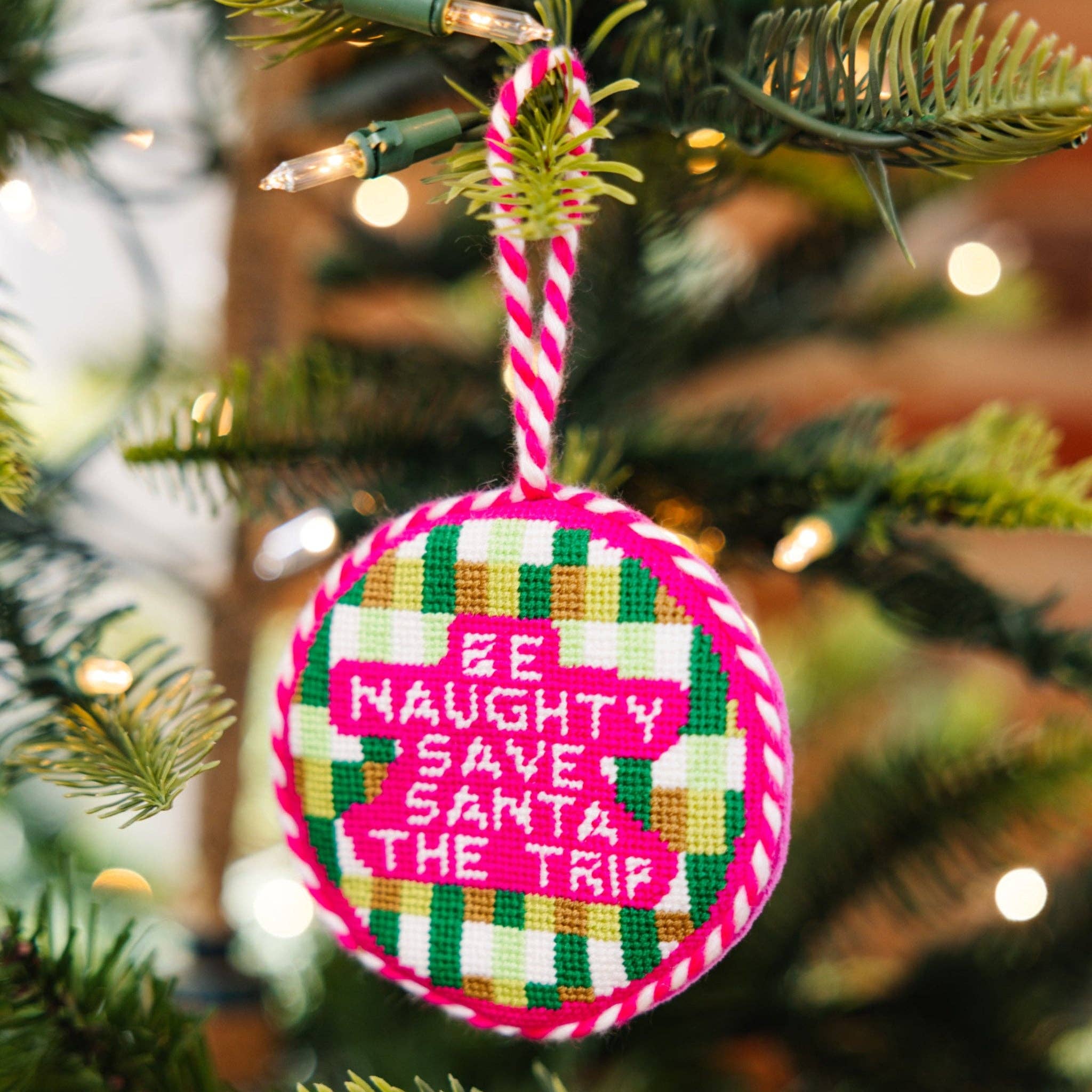 Whether you're naughty or nice, this cheeky needlepoint ornament will make the season bright. Backed in luxe velvet, we've revived this Southern staple with sayings that are sure to get a smile.