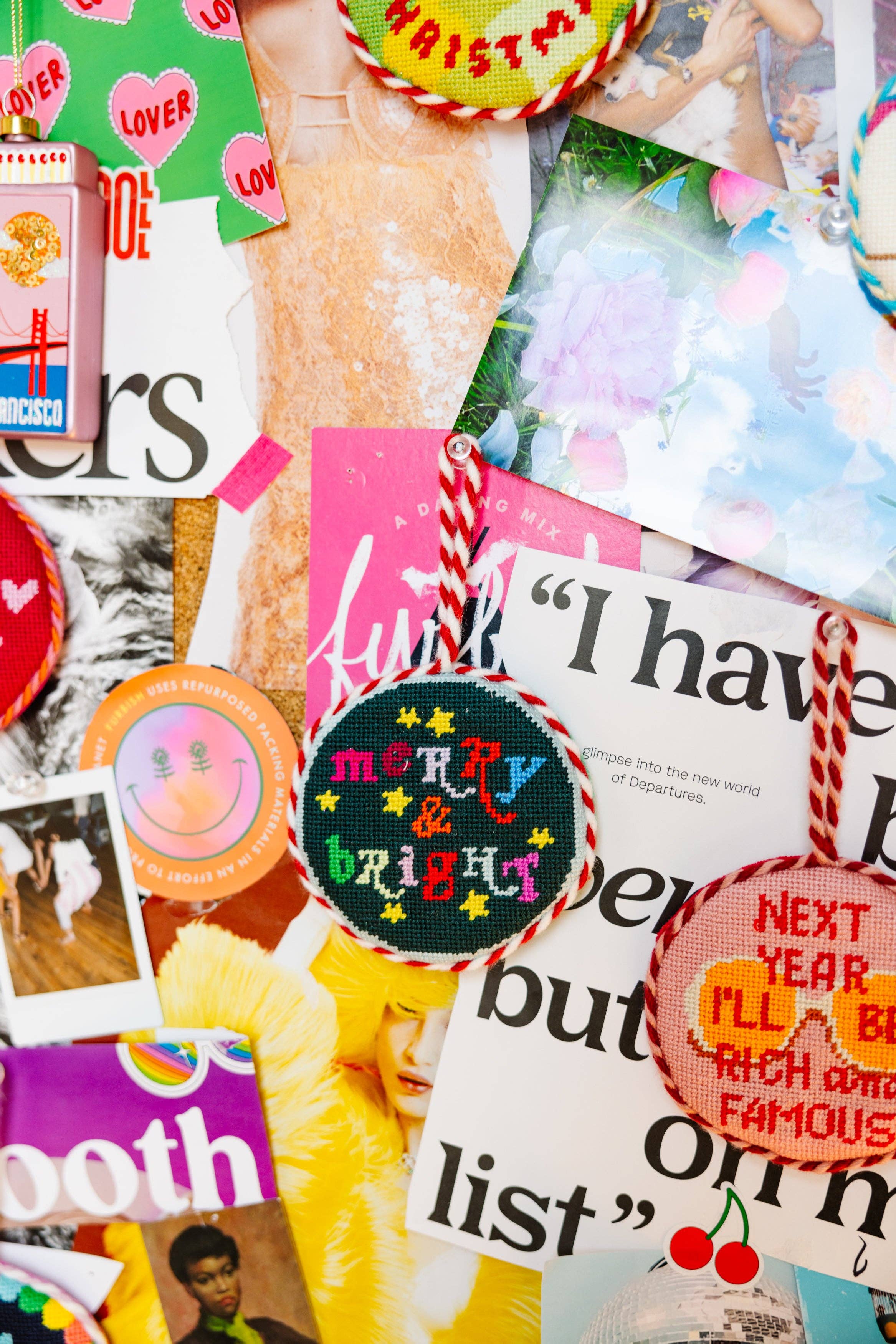 Take your holiday decor from trad to rad with Furbish's curated assortment of festive needlepoint pillows, ornaments, tree toppers, stockings, and tree skirts.