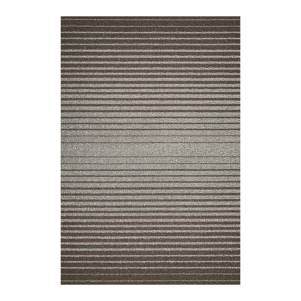 Inspired by the sharp contrast and mesmerizing motion of a cascading row of dominoes, the variegated stripes of this easy-care floor mat are at once dynamic and serene. Lines of varying widths create an ombré effect that is heightened when viewed at a distance.